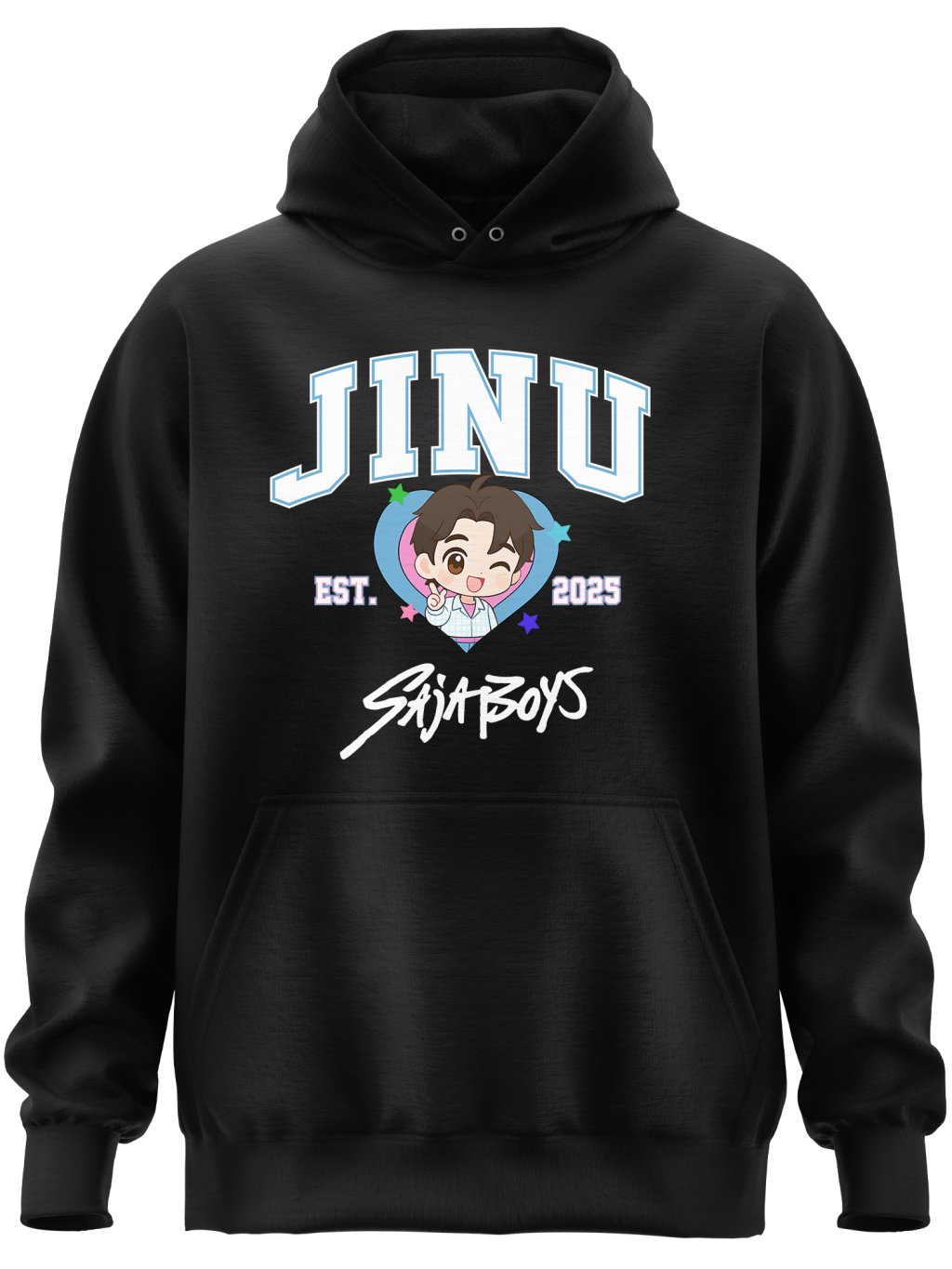 Mikina Jinu EST. 2025 je jako stvořená pro fanoušky, kteří milují klidný vizuál, čisté barvy a chibi energii Jinu – vždy usměvavý, vždy ready hodit peace sign a rozjasnit den.