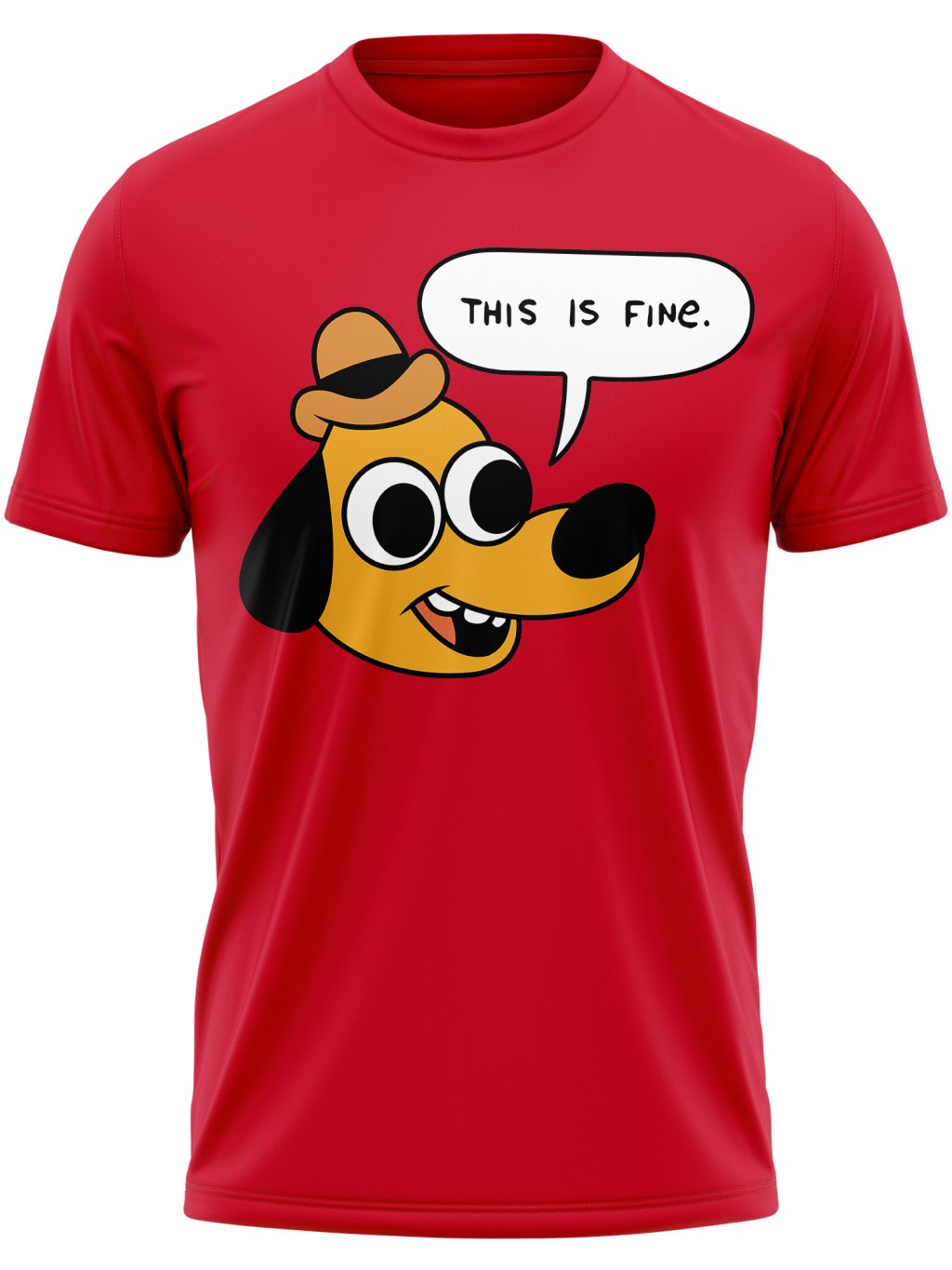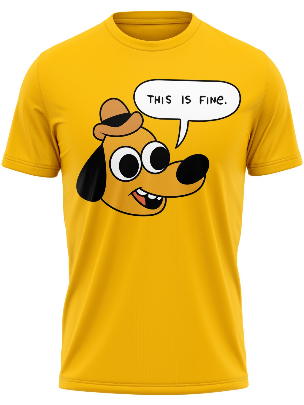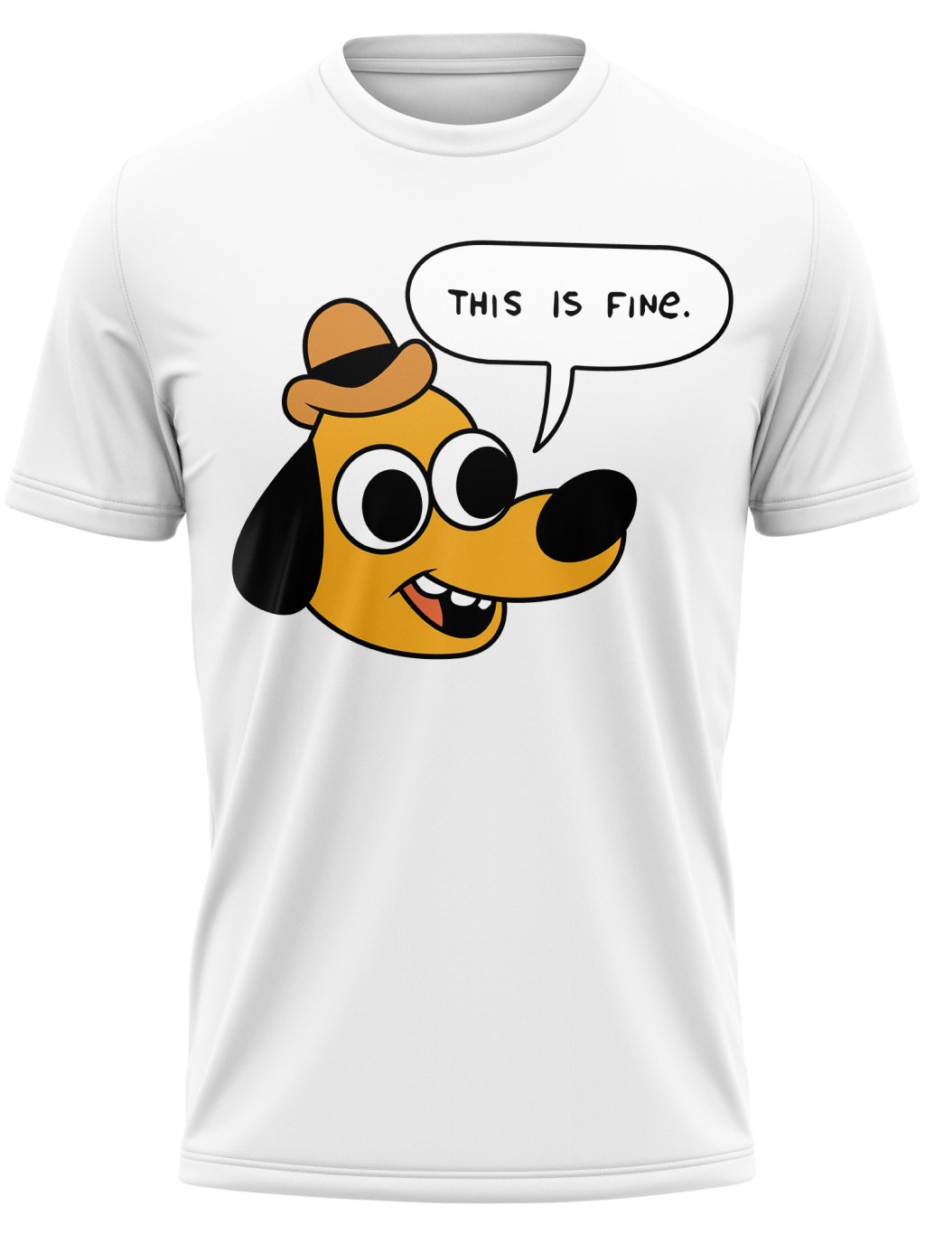 Všude hoří, ale tenhle pes? V klídku. Protože "This is fine." není jen hláška, je to životní postoj. Ať už ti hoří deadline, vztah nebo pizza v troubě – tohle tričko tě podrží.